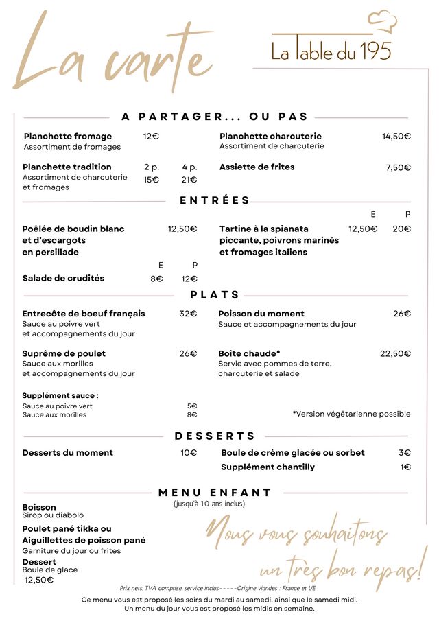LA TABLE DU 195
