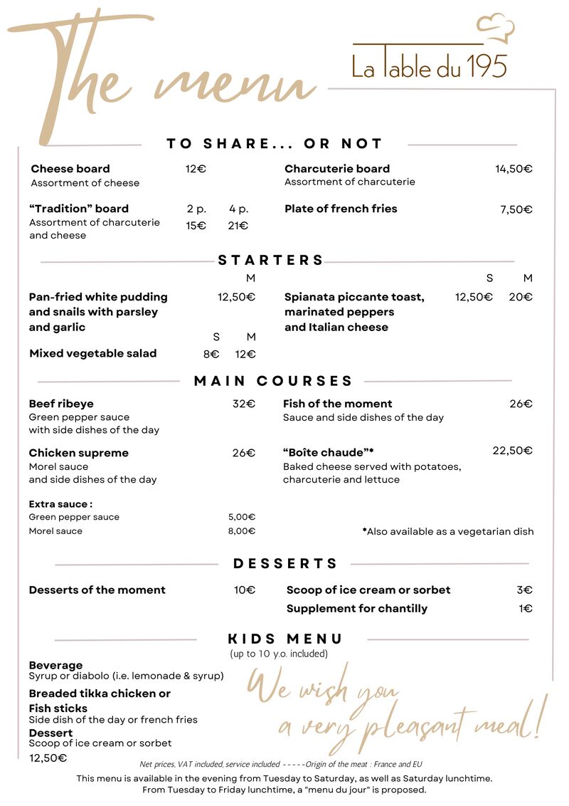 Le restaurant sera fermé du vendredi 19 décembre 2025 au soir (ouvert le midi) jusqu'au lundi 5 janvier 2026 inclus.
